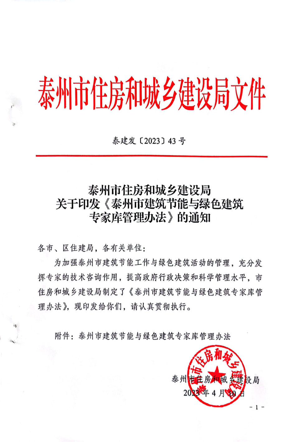 关于印发《泰州市建筑节能与绿色建筑专家库管理办法》的通知