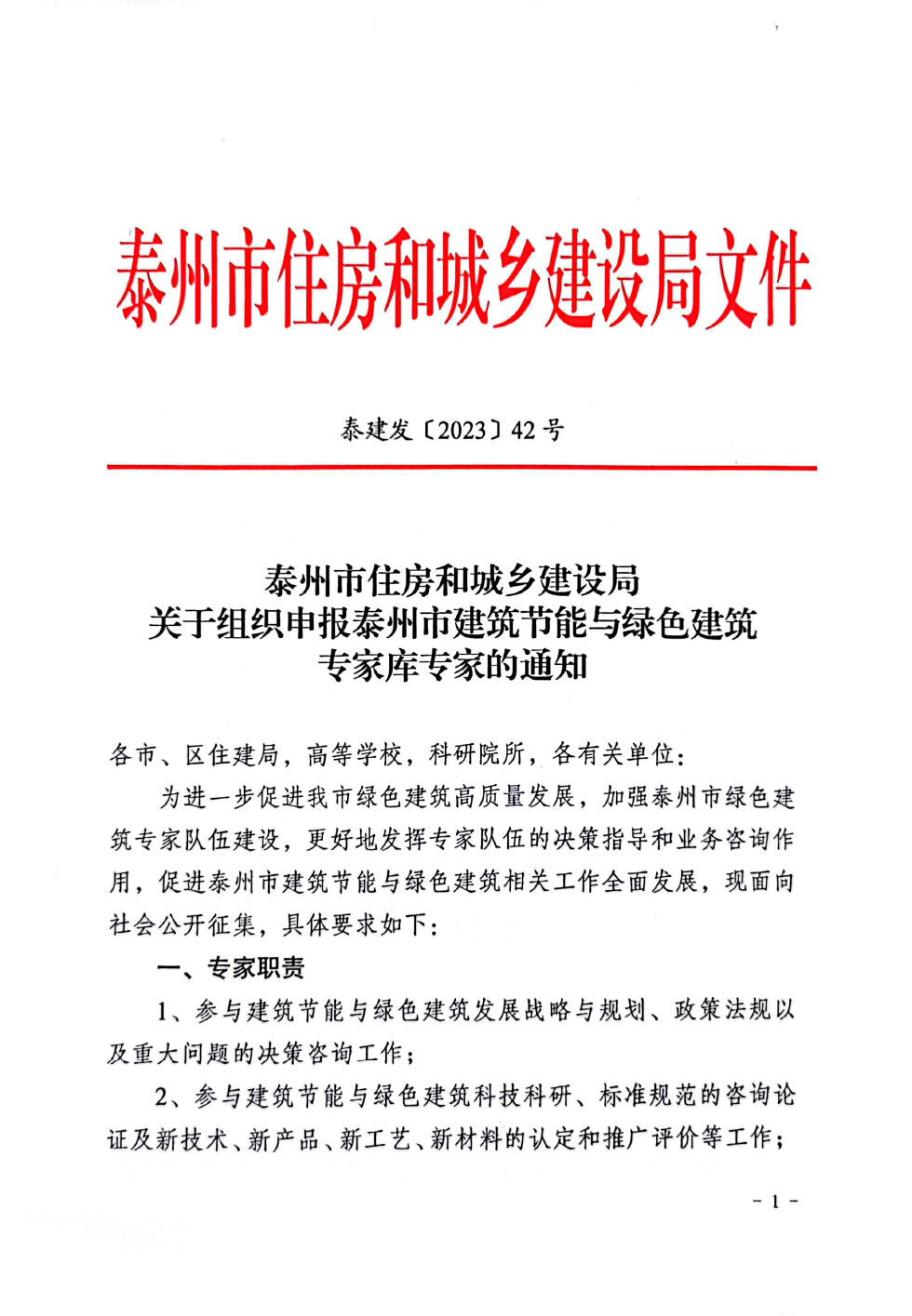 关于组织申报泰州市建筑节能与绿色建筑专家库专家的通知