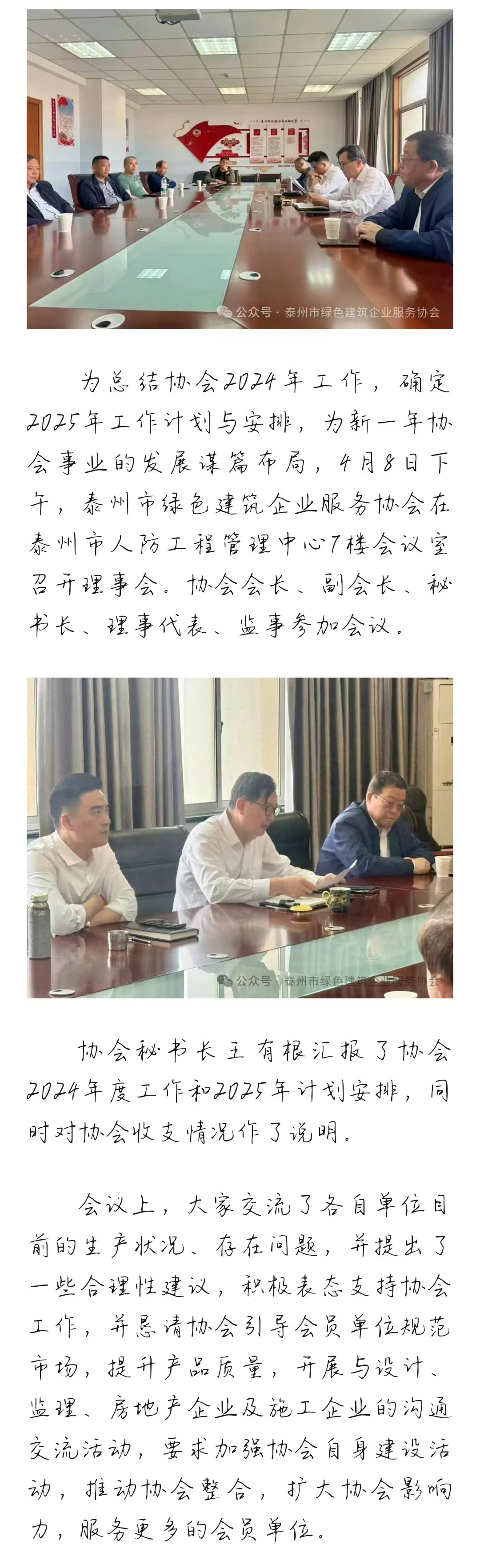 泰州市绿色建筑企业服务协会召开理事会