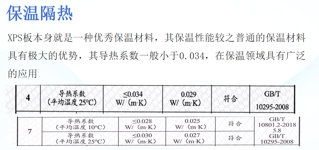 具有高热阻、低线性、膨胀比低的特点,其结构的闭孔率达到了99%以上,形成真空层,避免空气流动散热,确保其保温性能的持久和稳定,相对于发泡聚氨酯80%的闭孔率,优势不言而喻。实践证明20mm厚的XPS挤塑保温板,其保温效果相当于50mm厚发泡聚苯乙烯,120mm厚水泥珍珠岩。因此本材料是目前建筑保温的超佳之选。